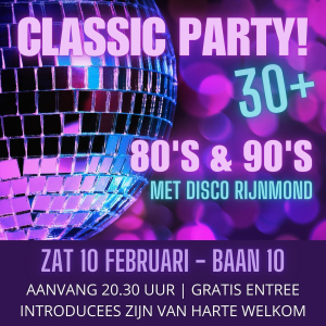 Zaterdag 10 februari is het weer tijd voor een heerlijke classic party(30+)!